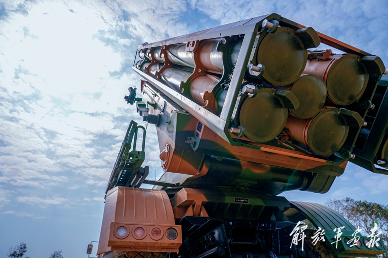 “放!”接收射擊命令后,各炮炮長(zhǎng)按下發(fā)射按鈕。頃刻間,火箭彈噴射著尾焰呼嘯出膛,形成密集火力網(wǎng),直撲目標(biāo)區(qū)域,沖天火光劃破茫茫夜空……