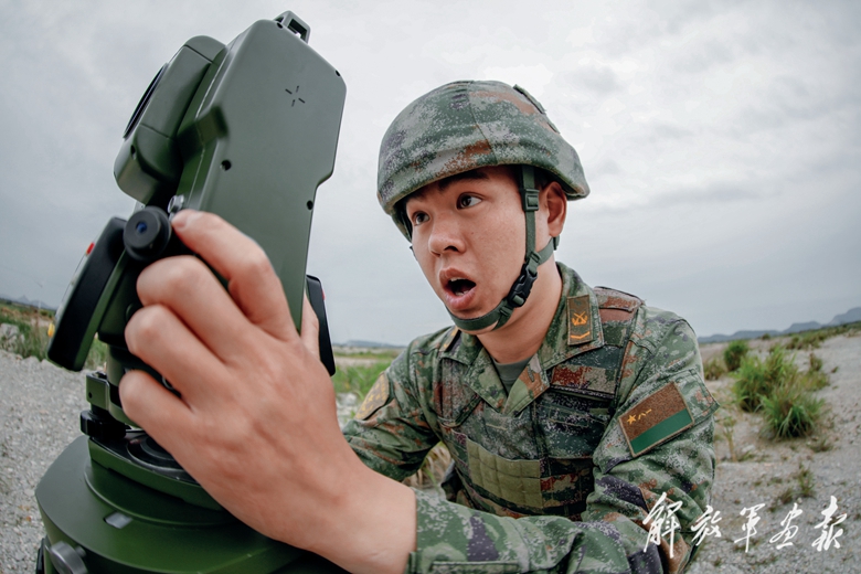 偵察分隊(duì)?wèi)?zhàn)士確定目標(biāo)位置。