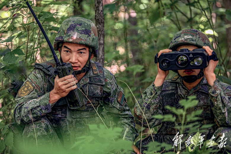 偵察員隱蔽滲透,偵察“敵情”。