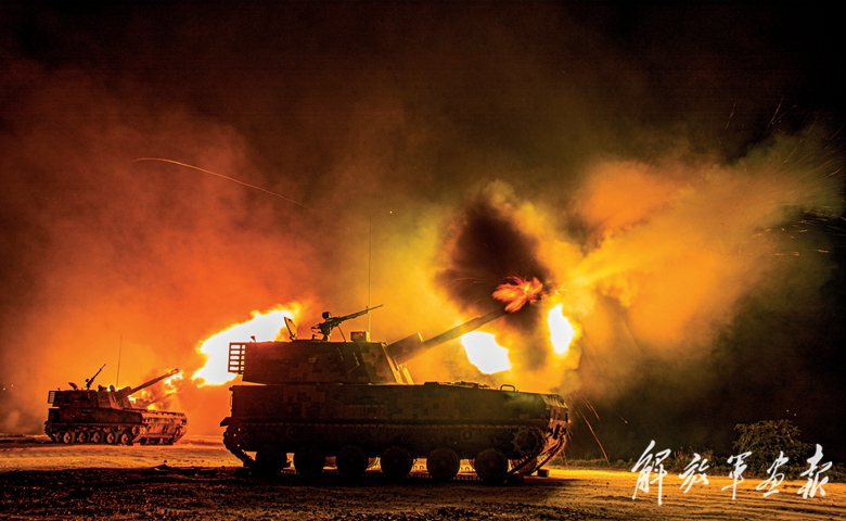 炮兵分隊進行夜間實彈射擊。
