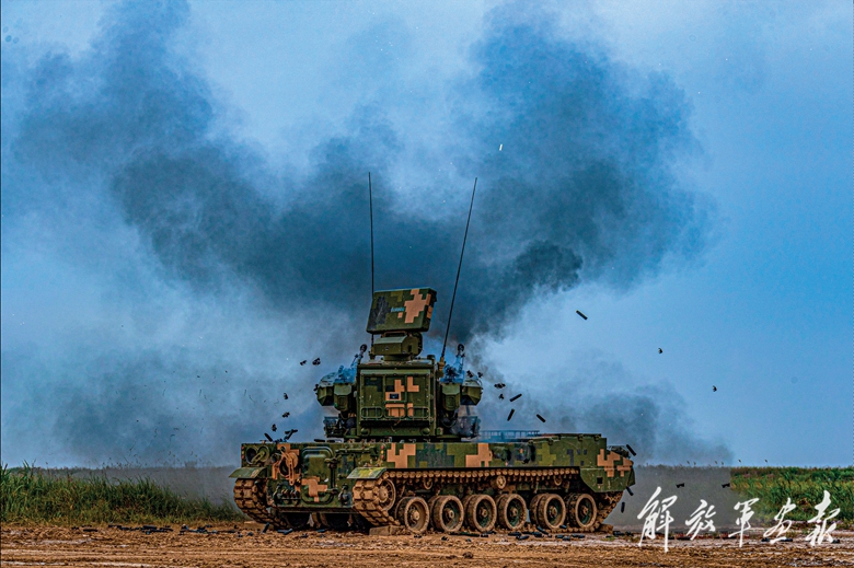 “東南方向發(fā)現(xiàn)‘敵’無人機偵察?!绷硪惶帒?zhàn)場,指揮員根據(jù)“敵情”通報,迅速下達射擊指令。雷達精準搜索目標,上報“敵機”飛行參數(shù),炮手快速調(diào)整射擊諸元,裝填彈藥。剎時間,炮彈在空中匯聚成密集火力網(wǎng),成功摧毀目標。