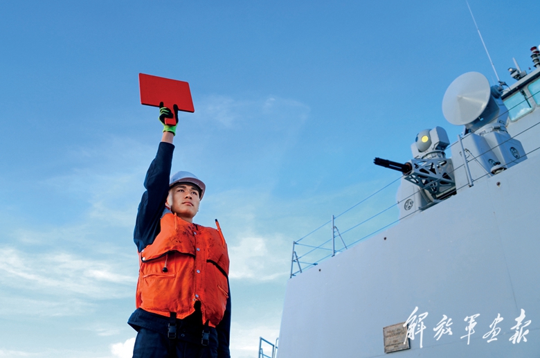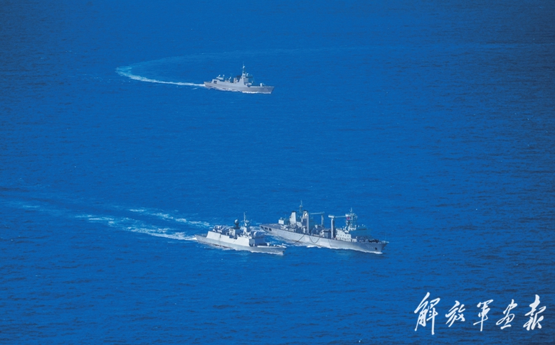 云飛浪卷,海天一色。編隊在某海域開展綜合補給時,突遭“敵機”抵近偵察。急促的警鈴聲響起,一場應(yīng)急處置演練拉開戰(zhàn)幕。