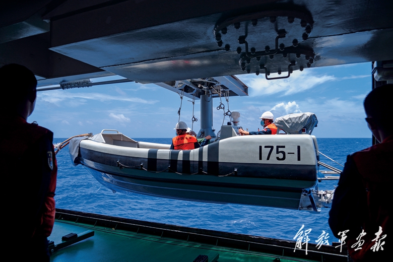 “發(fā)現(xiàn)落水人員!”前出偵察的艦載直升機,向編隊報告?zhèn)刹烨闆r。編隊指揮員命令直升機在“落水人員”上空持續(xù)繞飛觀察。與此同時,某驅(qū)逐艦向目標(biāo)方向加速航行。臨近目標(biāo)海域,戰(zhàn)艦吊放小艇,前出實施營救。經(jīng)過通力協(xié)作,官兵成功將“落水人員”營救上艦。