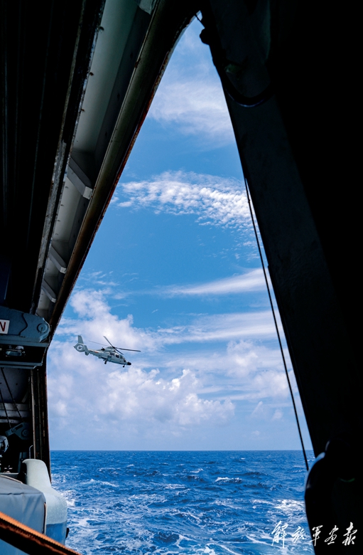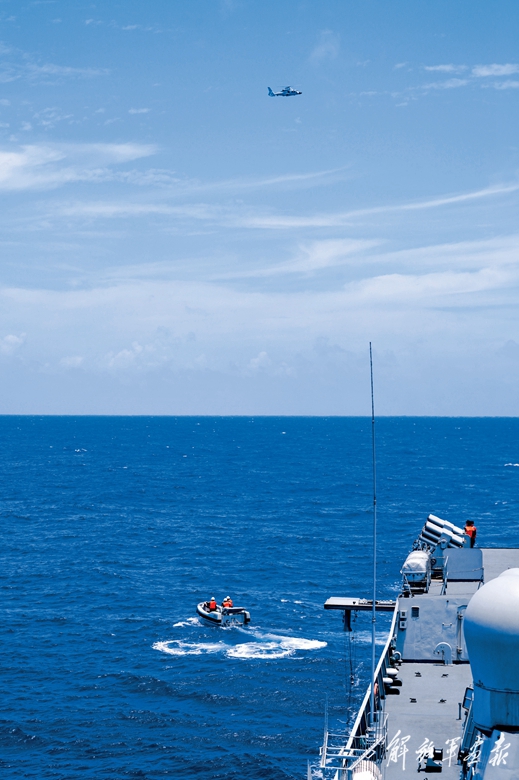 艦載直升機飛赴目標(biāo)海域,展開偵察行動。