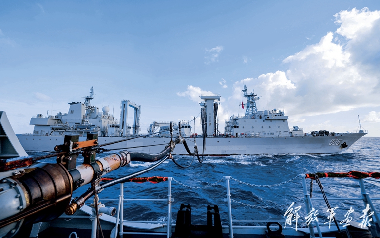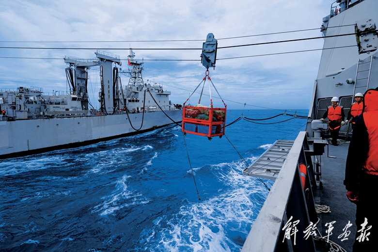 作戰(zhàn)室內(nèi),編隊指揮員命令各艦加強預(yù)警探測,隨時準(zhǔn)備應(yīng)對突發(fā)情況。補給艦和受補艦官兵密切協(xié)同,精準(zhǔn)對接,提高輸送速度,確保多種物資快速補給到位。