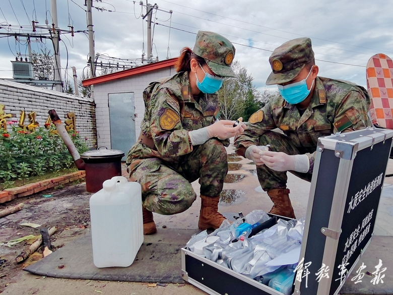 8月12日,聯(lián)勤保障部隊(duì)第965醫(yī)院抗洪搶險(xiǎn)衛(wèi)勤保障分隊(duì)在吉林省舒蘭市臨時安置點(diǎn)檢測水源水質(zhì)。(攝影/特約記者 汪學(xué)潮)