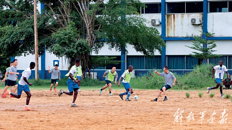 6月24日,海軍第43批護(hù)航編隊(duì)在對(duì)科特迪瓦進(jìn)行友好訪問(wèn)期間,中科雙方組織足球友誼賽。