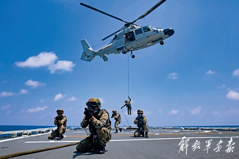4月12日,海軍第43批護(hù)航編隊(duì)組織官兵進(jìn)行直升機(jī)索降訓(xùn)練。