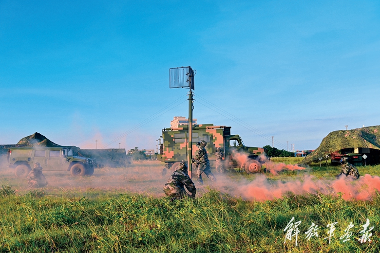 抵達(dá)預(yù)定陣地后沒(méi)多久,官兵又遭小股“敵特”襲擾。警戒人員立即前出展開(kāi)應(yīng)急處置,迅速消除隱患。指揮所內(nèi),指揮員依托指揮系統(tǒng)對(duì)戰(zhàn)場(chǎng)態(tài)勢(shì)進(jìn)行實(shí)時(shí)監(jiān)控,高效調(diào)度各類裝備人員,有效把控戰(zhàn)場(chǎng)環(huán)境態(tài)勢(shì);裝備方艙里,操作號(hào)手各司其職,與“敵”展開(kāi)激烈的攻防對(duì)抗。各方默契配合,成功鎖定“敵”目標(biāo)。