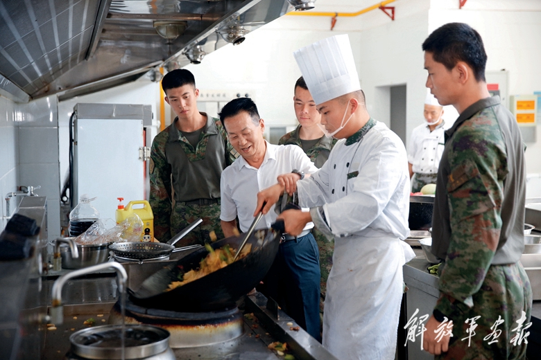八一建軍節(jié)前夕,在新疆軍區(qū)某部,一位身著廚師服的“大廚”在灶臺(tái)前為官兵進(jìn)行烹飪技能教學(xué)示范。他年過(guò)花甲,但依舊精神矍鑠,煎炒烹炸動(dòng)作如行云流水,沒(méi)多大一會(huì)兒,一道道色香味俱全的菜肴便像變魔術(shù)一樣擺在官兵面前,引來(lái)大家嘖嘖稱贊。