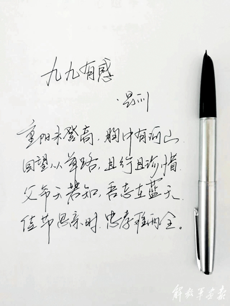 周昆訓(xùn)烈士生前撰寫的隨筆詩。(舒蘭市人武部供圖)
