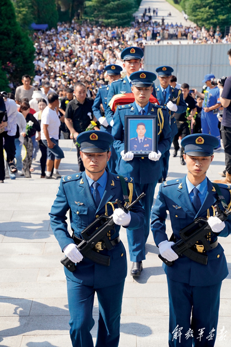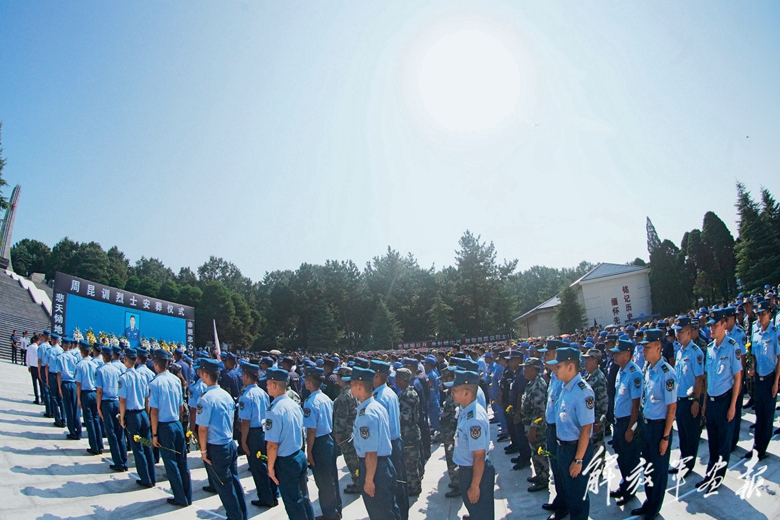 8月17日,周昆訓(xùn)烈士骨灰安葬儀式在河南省確山縣竹溝革命烈士陵園舉行。圖為官兵代表和社會各界群眾參加安葬儀式。(攝影/王嘉楠)