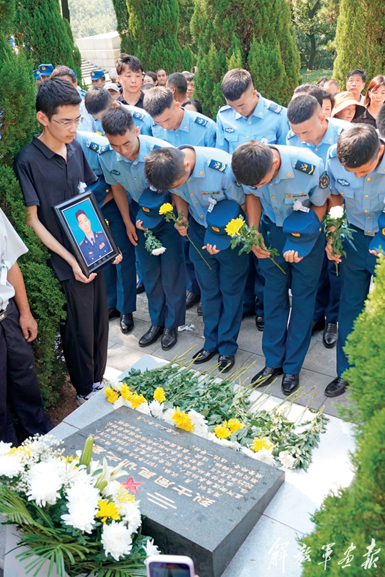 8月17日,周昆訓(xùn)烈士骨灰在河南省確山縣竹溝革命烈士陵園安葬,駐地官兵代表在烈士墓前舉行悼念活動。(攝影/孫有權(quán))