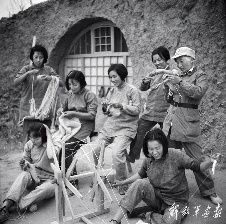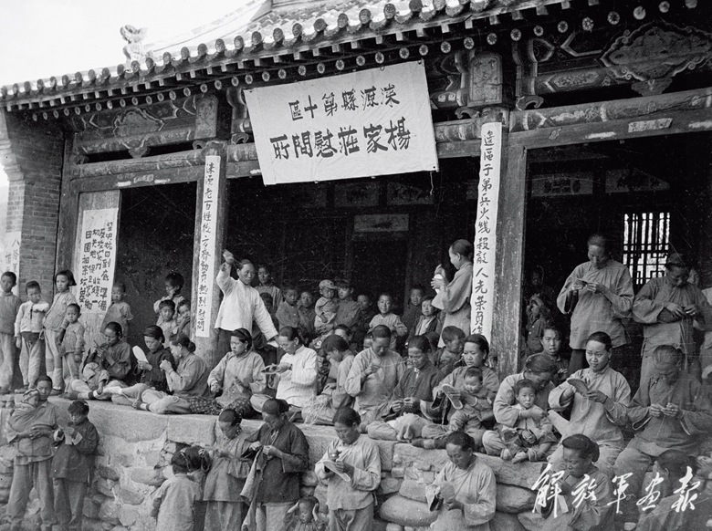 1940年,淶源婦女為前方戰(zhàn)士做鞋子。