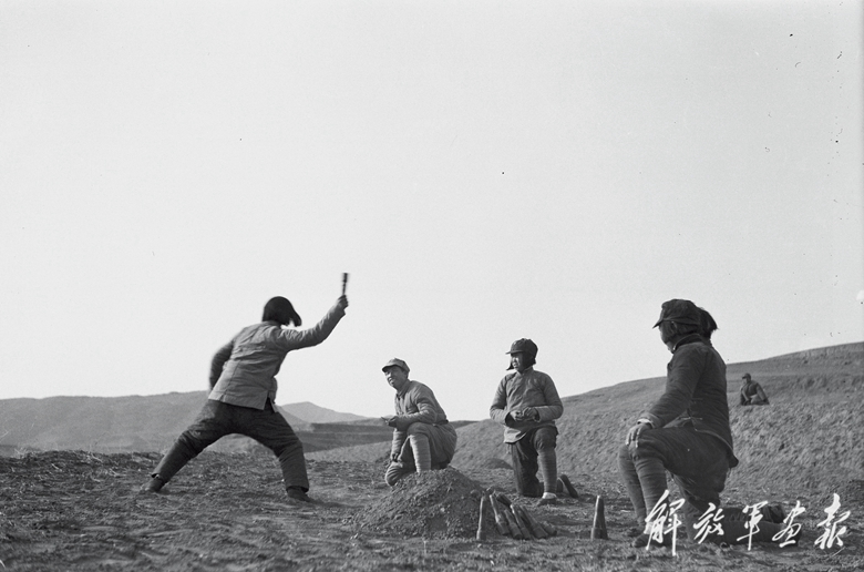1942年,《晉察冀畫報》(《解放軍畫報》前身)在殘酷的戰(zhàn)爭環(huán)境中誕生,沙飛任畫報社主任。圖為畫報社工作人員使用土造機(jī)器制作出精美的圖片。