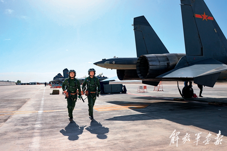 中午時分,戰(zhàn)機(jī)打靶歸來。機(jī)務(wù)官兵迅速上前,一絲不茍展開檢查維護(hù)工作,為戰(zhàn)機(jī)再次出動做好準(zhǔn)備。