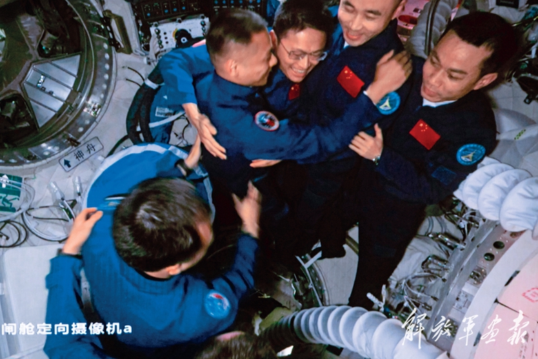 6名航天員共同在空間站工作生活約4天時(shí)間,完成各項(xiàng)既定工作。10月29日,神舟十六號(hào)、神舟十七號(hào)航天員乘組進(jìn)行交接儀式,兩個(gè)乘組移交了中國(guó)空間站的鑰匙。