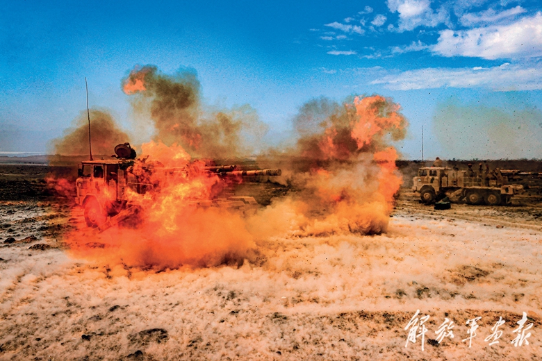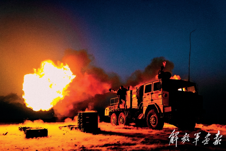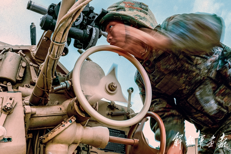 構(gòu)筑炮陣地、觀測(cè)氣象、建立通聯(lián)……抵達(dá)作戰(zhàn)地域后,官兵正在有序展開戰(zhàn)斗準(zhǔn)備時(shí),“敵情”突至。炮陣地上,各炮手協(xié)同配合,快速完成裝定表尺、裝填彈藥等操作,火炮進(jìn)入戰(zhàn)斗狀態(tài)?!胺?!”隨著一聲令下,戰(zhàn)炮怒吼,硝煙彌漫,一發(fā)發(fā)炮彈劃破蒼穹,直撲“敵”陣地。