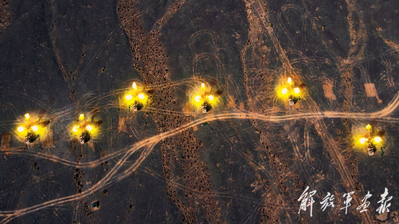 夜色漸濃,車隊(duì)在戈壁深處疾馳。突然,偵察組報(bào)告發(fā)現(xiàn)“敵”火力點(diǎn)。戰(zhàn)機(jī)稍縱即逝,指揮員當(dāng)即命令各炮車迅速完成戰(zhàn)斗轉(zhuǎn)換,隨即對(duì)目標(biāo)發(fā)起猛烈打擊……