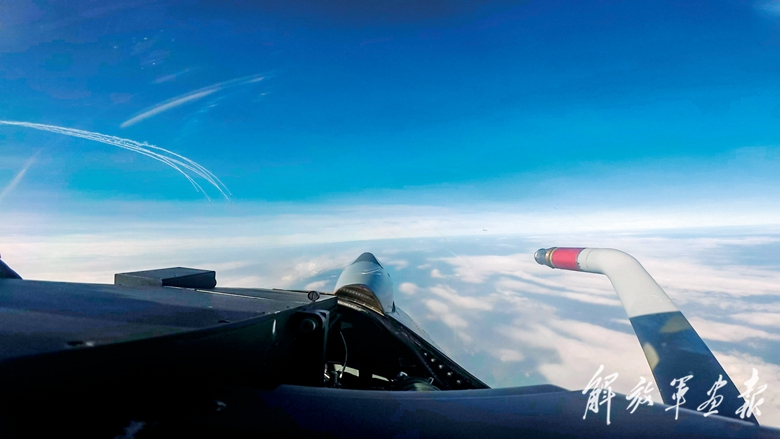 時(shí)而迎頭搶攻,時(shí)而機(jī)動(dòng)規(guī)避……云端之上,雙方不斷變換戰(zhàn)術(shù)戰(zhàn)法,戰(zhàn)場(chǎng)態(tài)勢(shì)瞬息萬(wàn)變。
