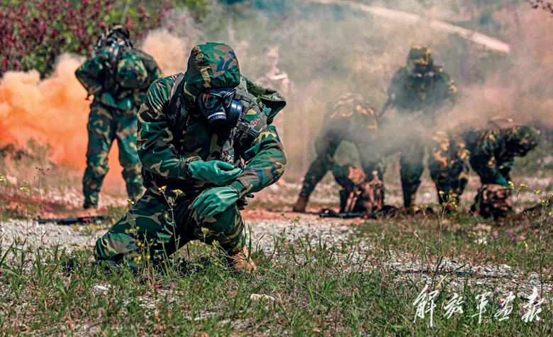 分隊(duì)官兵奔襲過叢林小道時(shí),忽然遭遇“敵”襲擾,一聲爆炸后,濃煙四起,疑似產(chǎn)生“有毒”氣體。官兵迅速進(jìn)行全身防護(hù),快速穿越危險(xiǎn)地帶,并按處置預(yù)案展開隊(duì)形,對(duì)“敵”實(shí)施抓捕,有效處置特情。