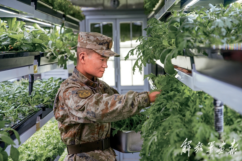 采用無土栽培技術的集裝箱“植物工廠”,讓邊防官兵吃上綠色蔬菜。