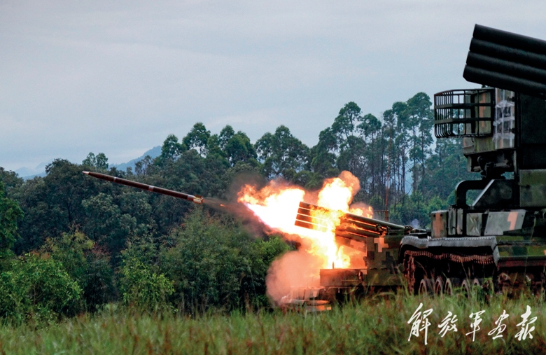 一輪戰(zhàn)罷,硝煙尚未散盡,部隊接到轉(zhuǎn)移陣地的命令。不多時,各戰(zhàn)車從戰(zhàn)斗狀態(tài)轉(zhuǎn)換至行軍狀態(tài),快速駛離陣地。與此同時,在山野間靜默的火箭炮分隊迅即出動,占領(lǐng)射擊陣地,接力發(fā)起攻擊。陣地上空,一枚枚火箭彈呼嘯著劃破蒼穹,織成一張密集的火力網(wǎng)。
