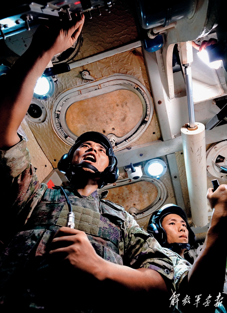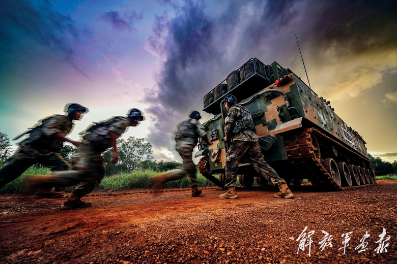 戰(zhàn)斗在拂曉打響,偵察組隱蔽出擊實施偵察。指揮方艙內(nèi),官兵緊盯屏幕,向各戰(zhàn)車實時傳輸目標數(shù)據(jù)?!扒胺皆庥觥當场讏觯 薄暗缆肥軗p無法通行!”……面對多種特情疊加考驗,官兵沉著應(yīng)對,密切協(xié)同,成功化解。抵達預定陣地后,隨著射擊指令下達,炮彈接連出膛,目標地域頓時陷入火海。