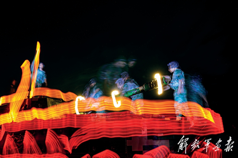 夜幕降臨,戰(zhàn)斗仍在持續(xù)。官兵借助微光快速補充彈藥、檢查裝備狀態(tài),隨即投入新一輪打擊行動……