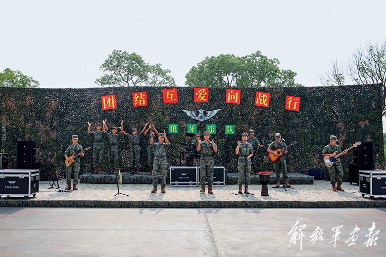 訓練間隙,官兵舉行文藝演出活動,在共同娛樂中增進戰(zhàn)友情誼。