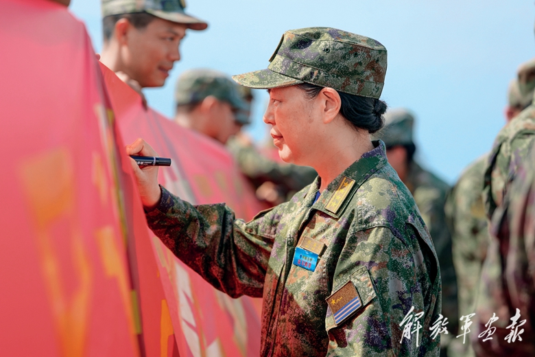 航行途中,開展向黨旗宣誓活動(dòng),激勵(lì)教員們?cè)咧v臺(tái)、逐夢(mèng)萬里海疆。