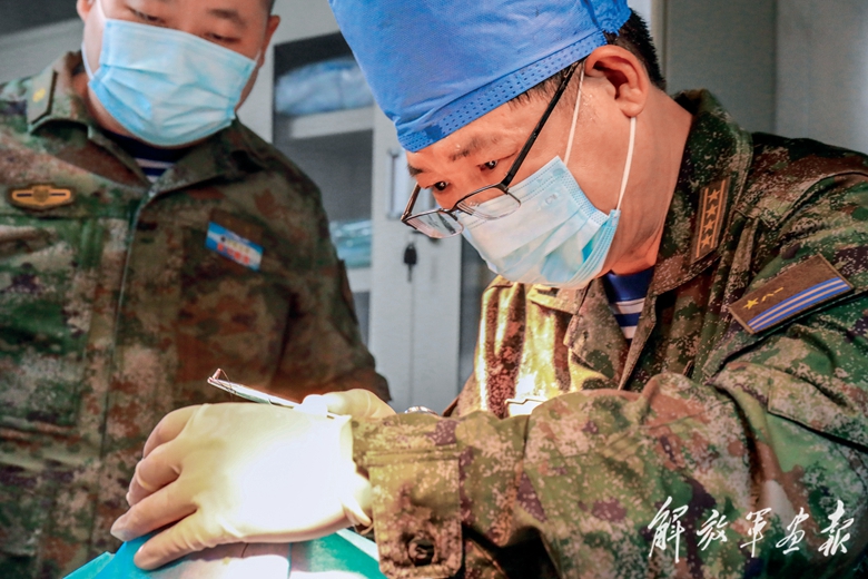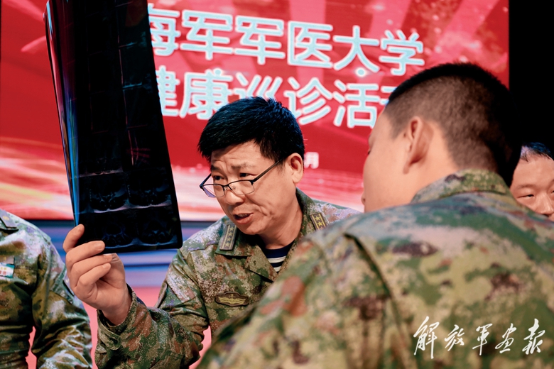 靠泊學(xué)習(xí)期間,參加航海實(shí)習(xí)的醫(yī)療專家為部隊(duì)官兵進(jìn)行診療。
