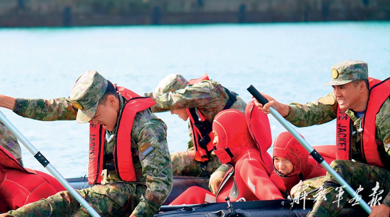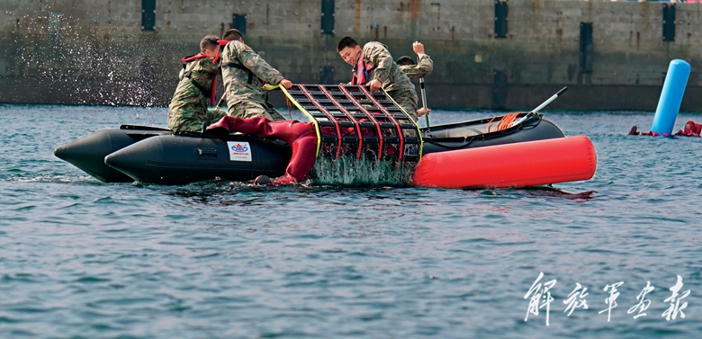中國(guó)海軍院校學(xué)員參加海上救生賽。
