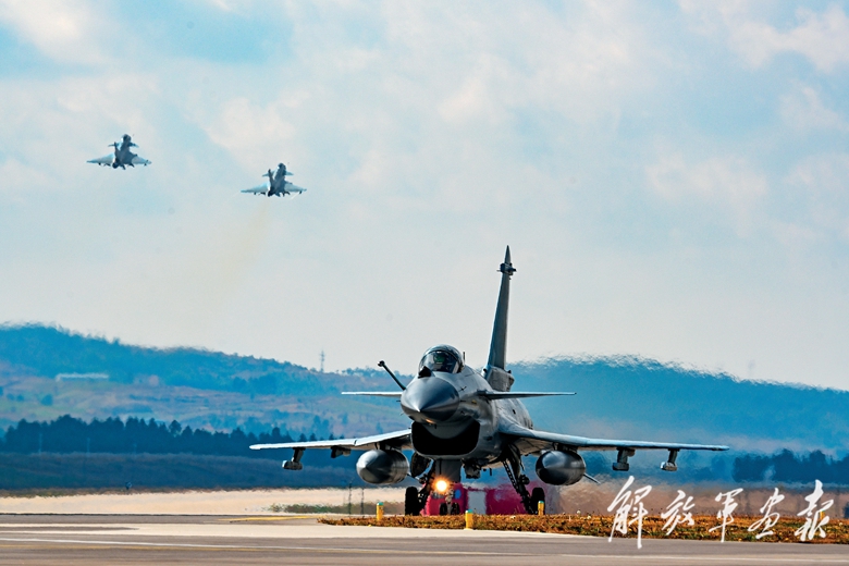 空軍航空兵某旅數(shù)架戰(zhàn)機(jī)依次升空,展開實(shí)戰(zhàn)化訓(xùn)練。(攝影/虞達(dá)顯)