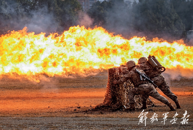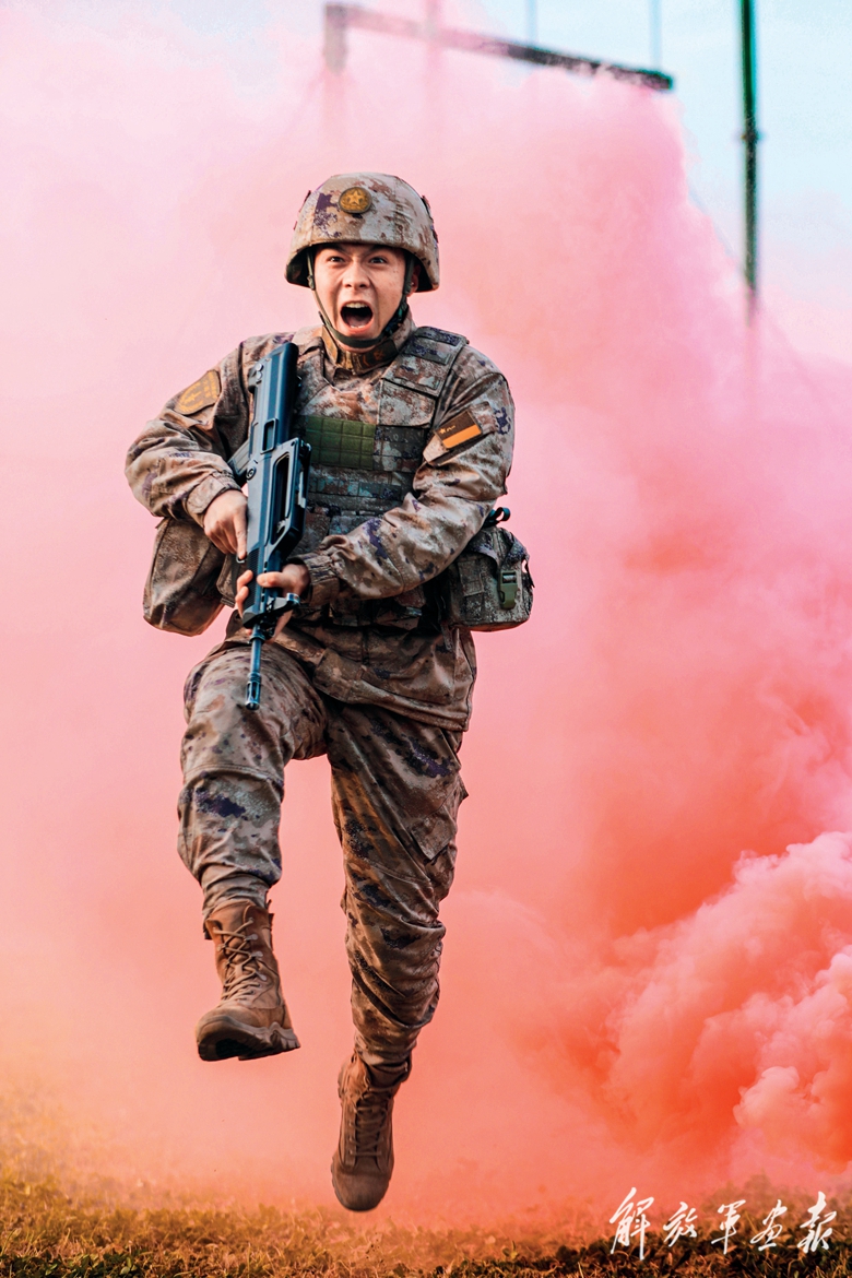 陸軍某團(tuán)組織戰(zhàn)術(shù)基礎(chǔ)動(dòng)作訓(xùn)練,磨礪官兵血性膽氣。(攝影/鄧 博)