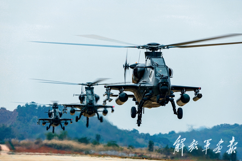 南部戰(zhàn)區(qū)陸軍某旅戰(zhàn)機(jī)編隊(duì)飛赴訓(xùn)練空域。(攝影/李春國)