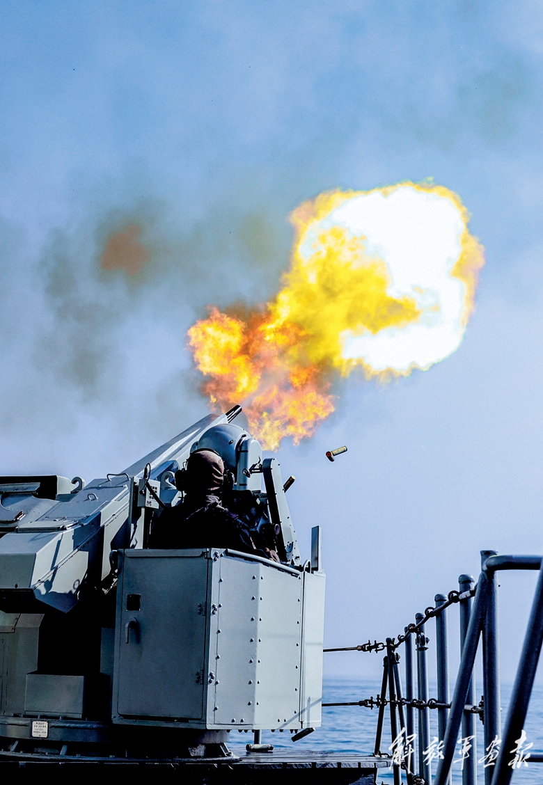 新年伊始,東部戰(zhàn)區(qū)海軍某支隊(duì)開展實(shí)戰(zhàn)化海上訓(xùn)練。圖為對(duì)空應(yīng)用射擊。(攝影/代靖宇)
