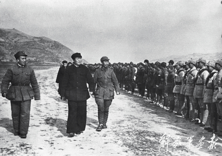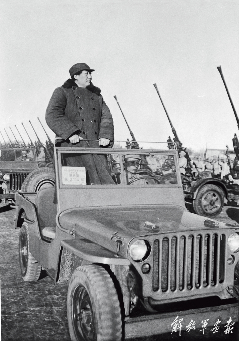 1949年3月,毛澤東同志在北京西苑機(jī)場檢閱部隊(duì)。