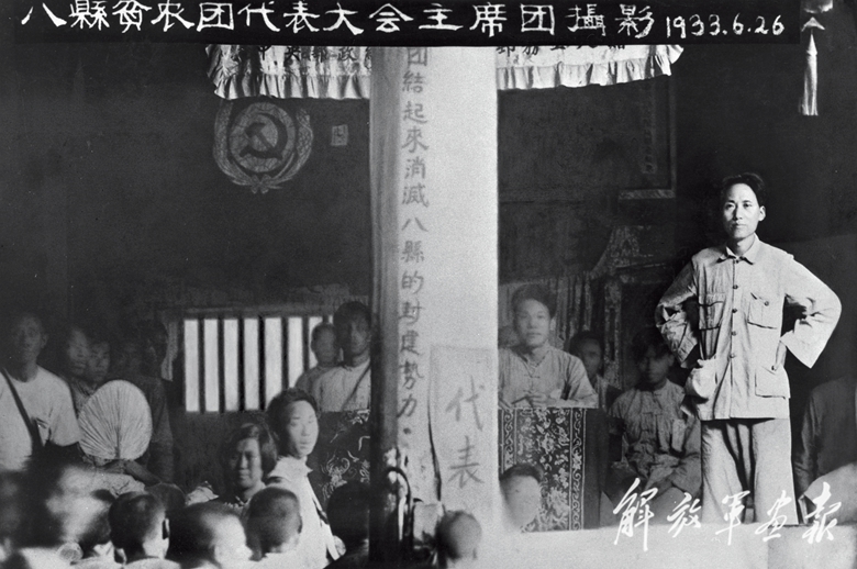 1933年6月,江西瑞金葉坪,毛澤東同志在中央革命根據(jù)地八縣貧農(nóng)團(tuán)代表會(huì)議上講話。