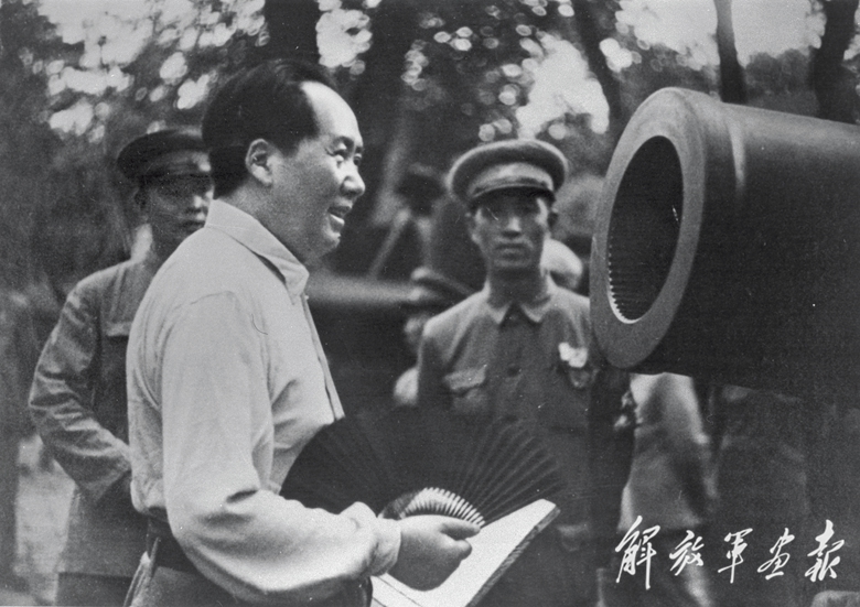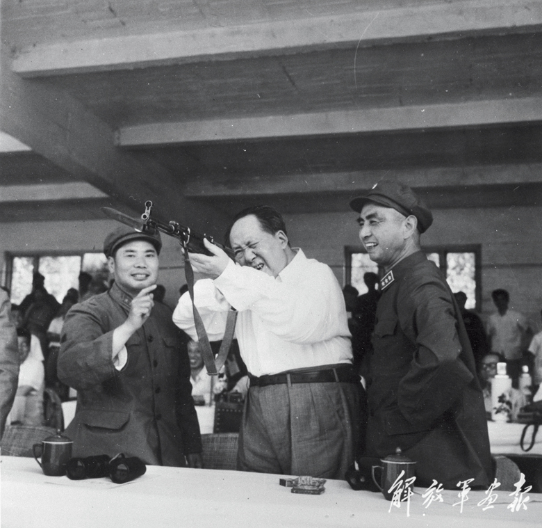 1964年,毛澤東同志在全軍比武大會(huì)上,用神槍手使用過的槍支瞄準(zhǔn)。