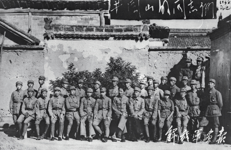 1938年,參加井岡山斗爭的部分同志在延安合影。前排左七為毛澤東同志。