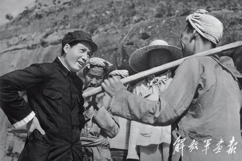 毛澤東同志在延安楊家?guī)X和農(nóng)民親切談話。