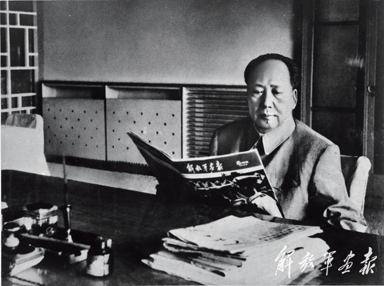 1962年7月,毛澤東同志在武漢視察工作期間,在東湖賓館閱讀1962年第6期《解放軍畫報(bào)》。