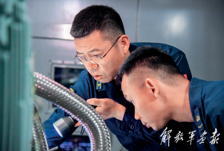 接艦之初,艦黨委開展“合心、合力、合編”系列教育,將來自多個兵種部隊的官兵擰成一股繩。大家白天同工人一起下艙室、摸管路,晚上加班加點學專業(yè)、畫圖紙;走遍全艦每個艙室,理清數(shù)百公里長的線纜,繪制數(shù)千套系統(tǒng)原理圖,全員通過理論、實操培訓考核。
