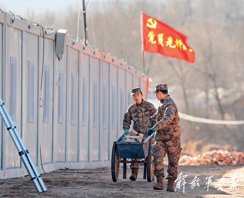 2023年12月30日,官兵幫助受災群眾進行災后重建。