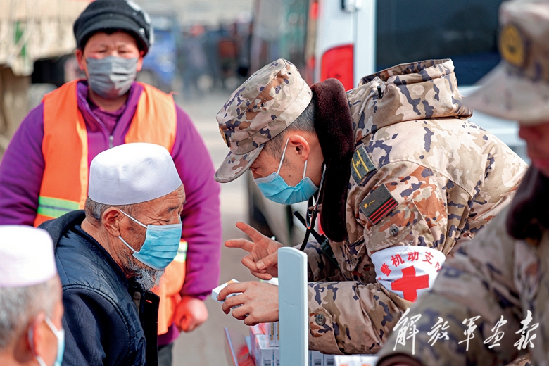 2023年12月22日,部隊醫(yī)務人員為受災群眾提供醫(yī)療服務。