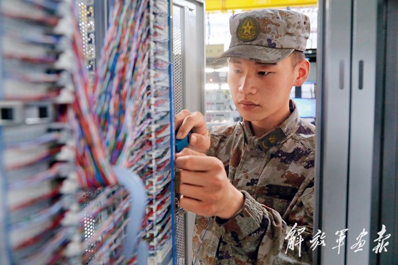 戰(zhàn)士孔慶世在機(jī)房值勤。