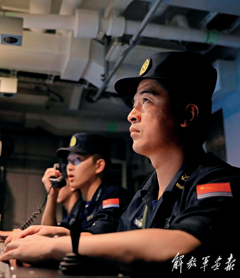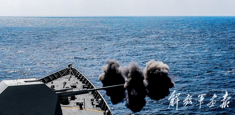 戰(zhàn)艦機(jī)動途中,各武器系統(tǒng)迅速做好戰(zhàn)斗準(zhǔn)備。烏魯木齊艦作戰(zhàn)指揮室內(nèi),各種口令聲此起彼伏。指揮員根據(jù)“敵艦”運(yùn)動要素,實(shí)時研判戰(zhàn)場態(tài)勢,指揮各戰(zhàn)位采取行動。不久,雷達(dá)鎖定目標(biāo)。“開火!”霎時,一發(fā)發(fā)炮彈直撲“敵艦”。