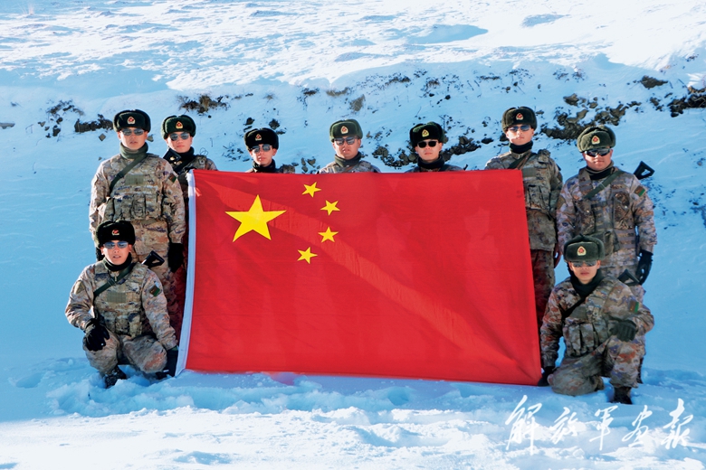 連隊(duì)官兵到達(dá)點(diǎn)位,展開國(guó)旗宣示主權(quán)。