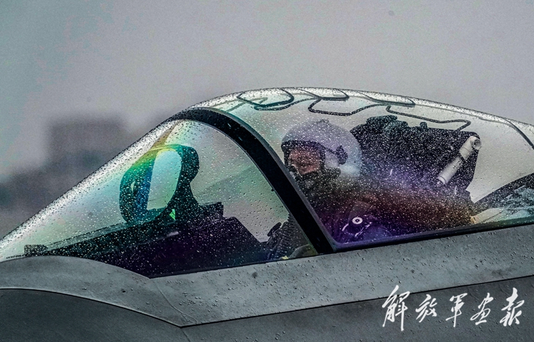 飛行員駕機(jī)冒雨起飛,錘煉復(fù)雜氣象條件下作戰(zhàn)本領(lǐng)。